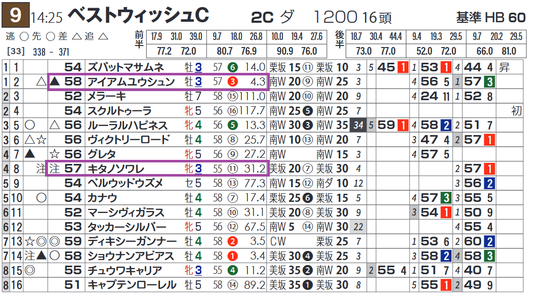 相手は4走連続して2着&3着の⑭ショウナンアビアス。
