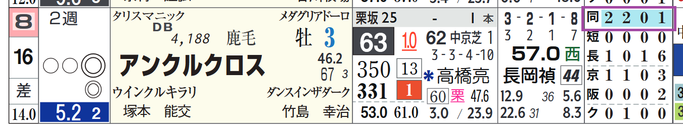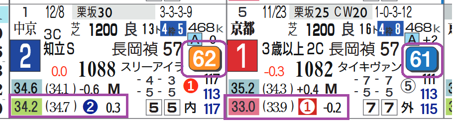上がり最速(上がり2位に0.4秒差以上)