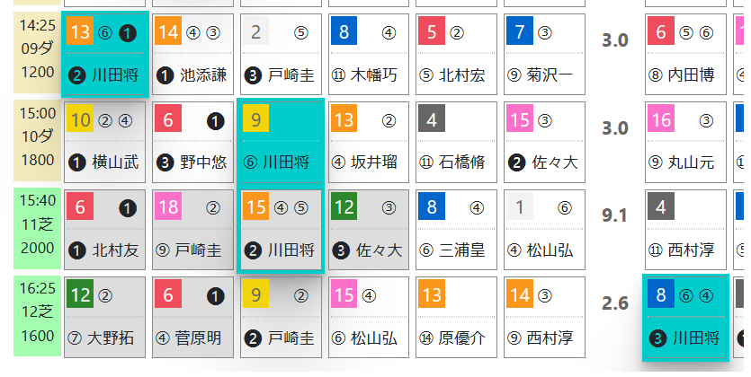 川田騎手は後半レースで有力馬が多数。