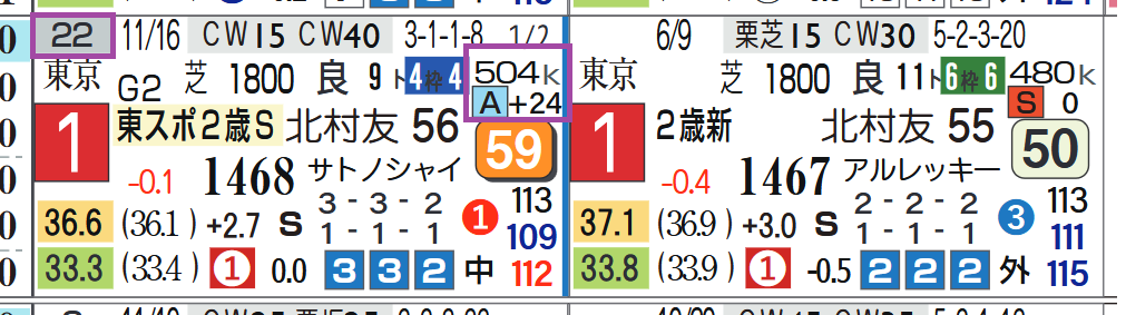 「ローテーション」=中22週、「馬体重」=504k(+24)