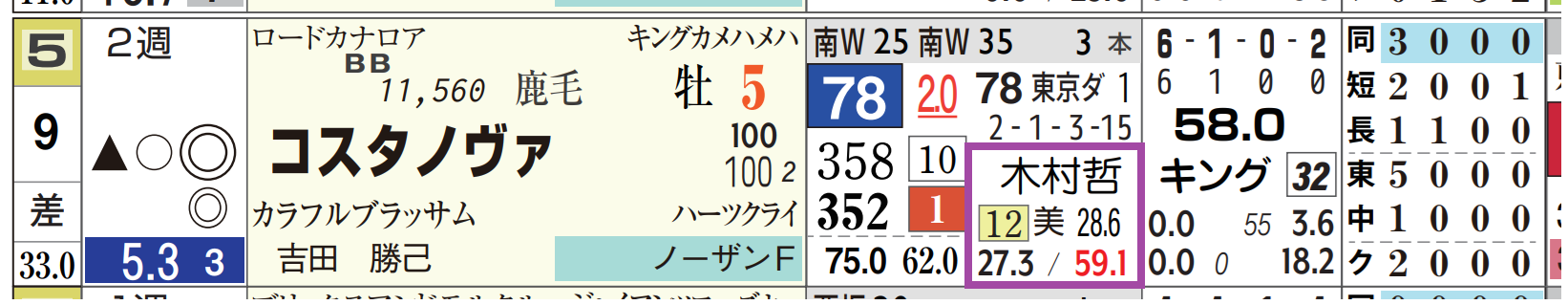 木村厩舎は東京ダートの複勝率が59%と優秀。
