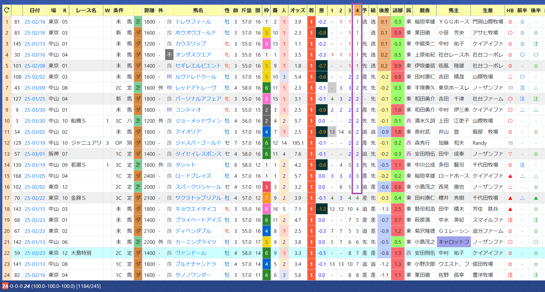 ステレンボッシュは8戦すべて3着以内、牝馬三冠が「レースレベル」=《S》、オークスで上がり最速をマークして2着。