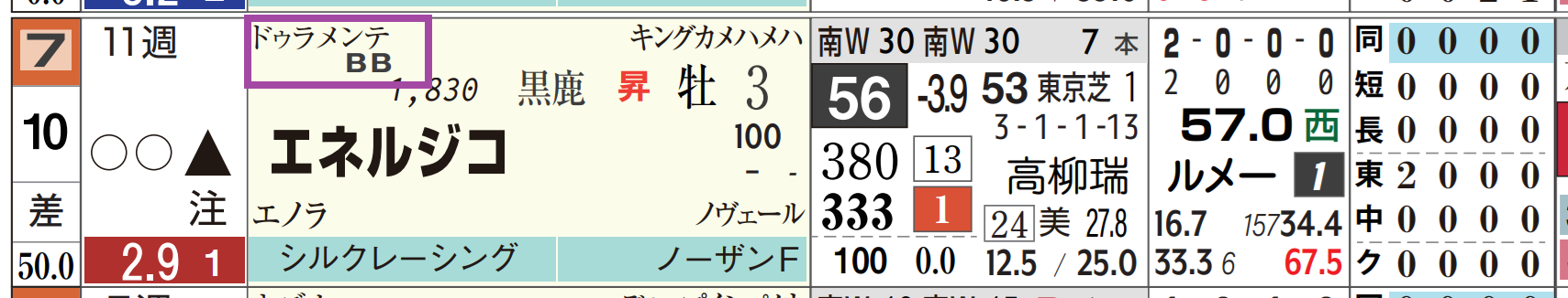 ⑩エネルジコは新馬戦が好ラップ&断トツ上がり。