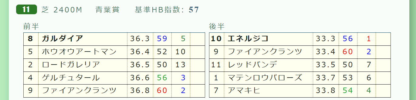 上がり最速(上がり2位に0.9秒差)、「レースラップのラスト3ハロン」=11.9秒-11.3秒-11.1秒