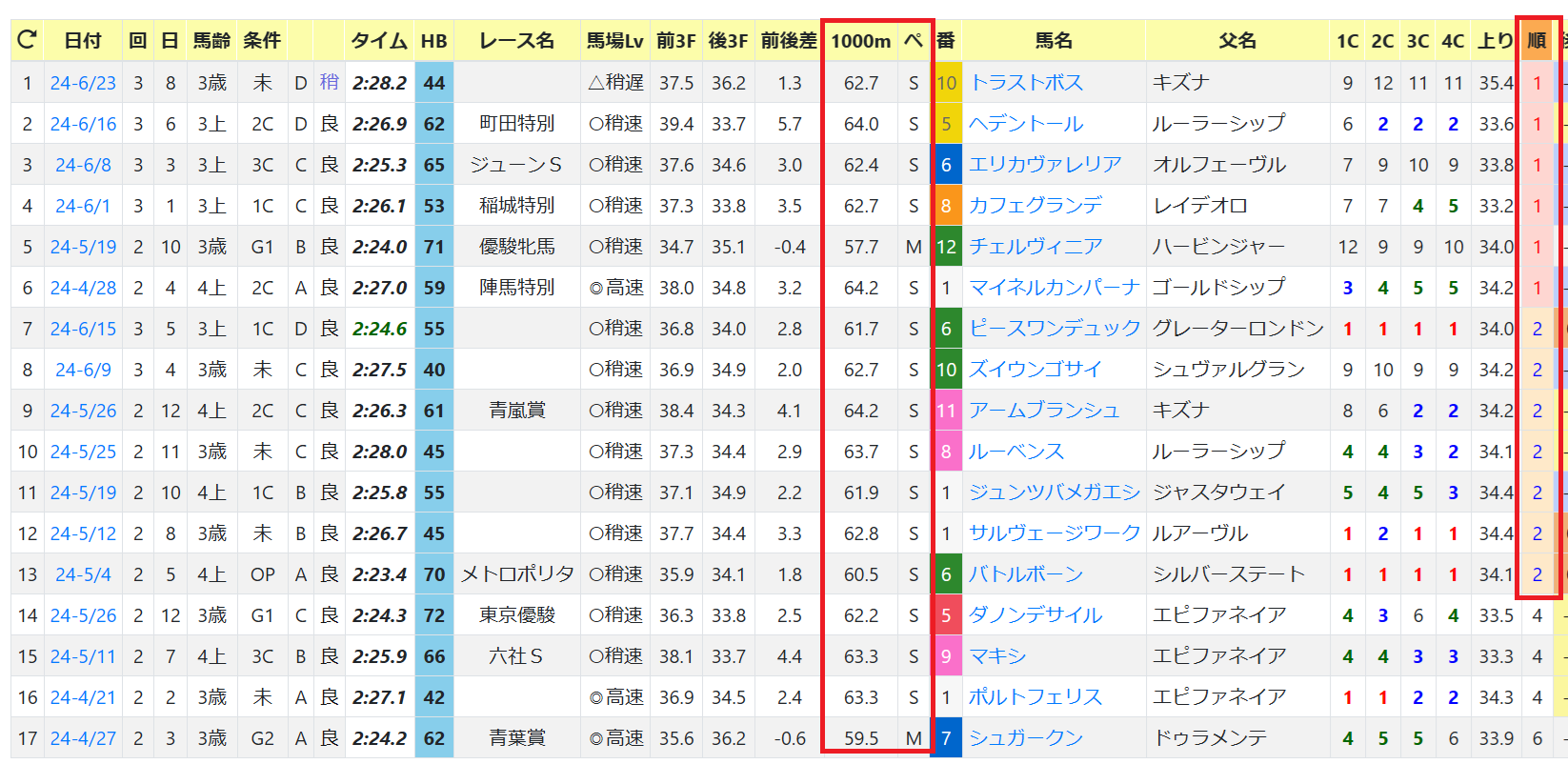 「インスタグラム」「ツイッター」に書いた通り、昨春の17レース中、1000m60秒超えのスローペースがほとんど。上がり最速馬が6勝、2位以内が13勝。ペースが遅くても差しは決まる。