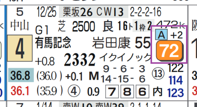 「レースレベル」=《A》、「ハイブリッド指数」=《72》
