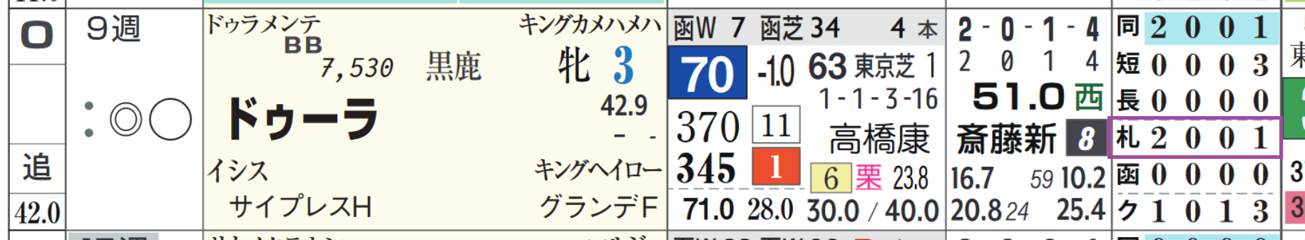 ドゥラメンテ産駒は札幌の芝の中~長距離の成績&回収率が優秀。