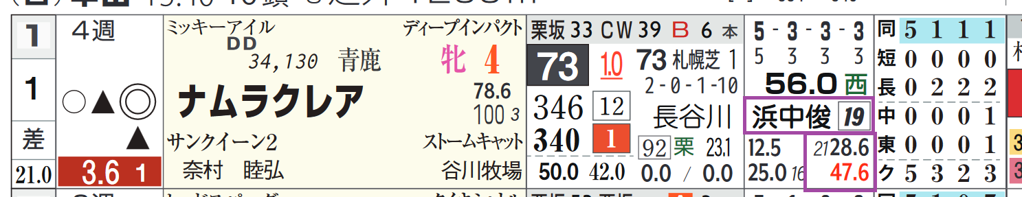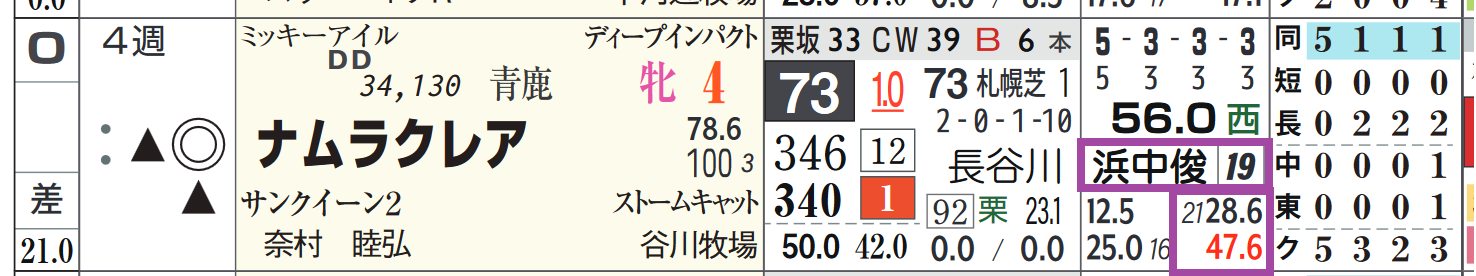 浜中騎手は中山の芝の複勝率40%超えと優秀。