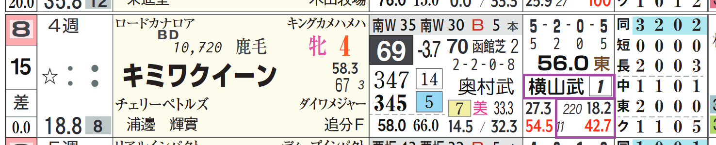 「騎手の該当競馬場の成績」=勝ち数1位、勝率18.2%&複勝率42.7%(220レース)