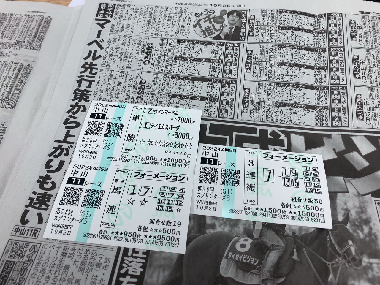 馬連 153.4×500円=7万6200円