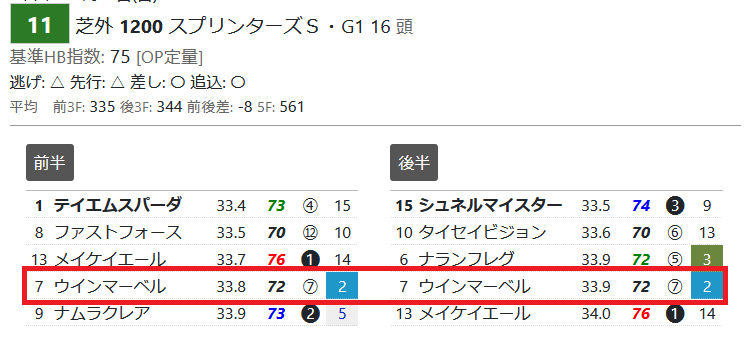 前後半5傑入り=⑦ウインマーベル