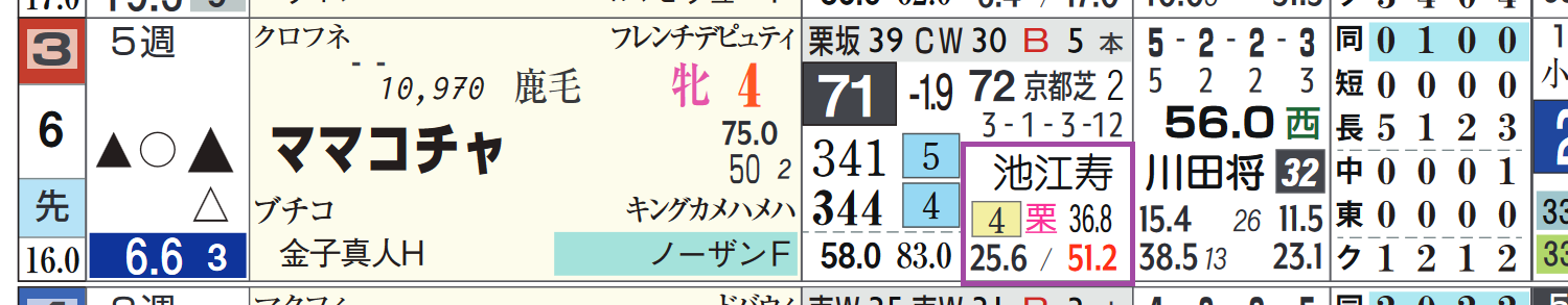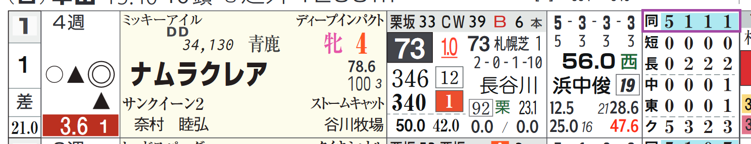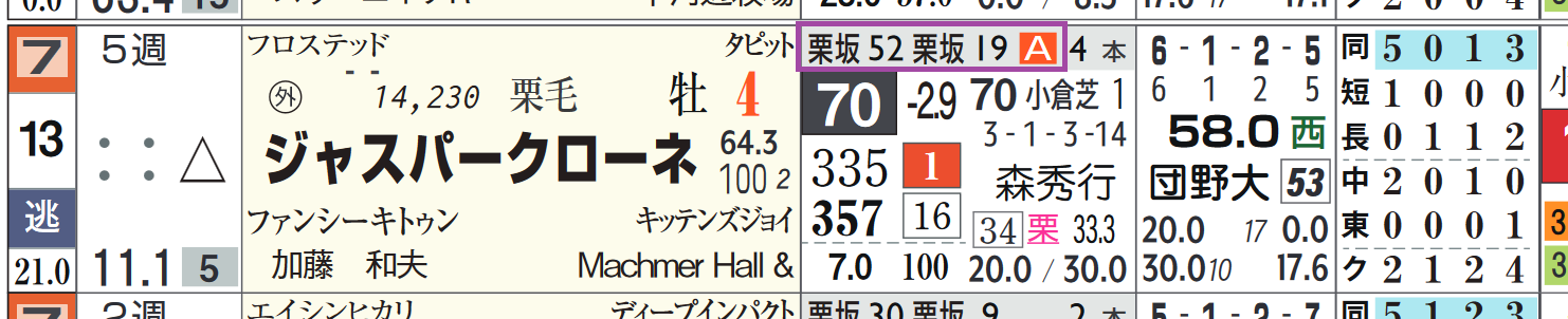「厩舎の該当競馬場の成績」=勝ち数4位、勝率25.6%&複勝率51.2%