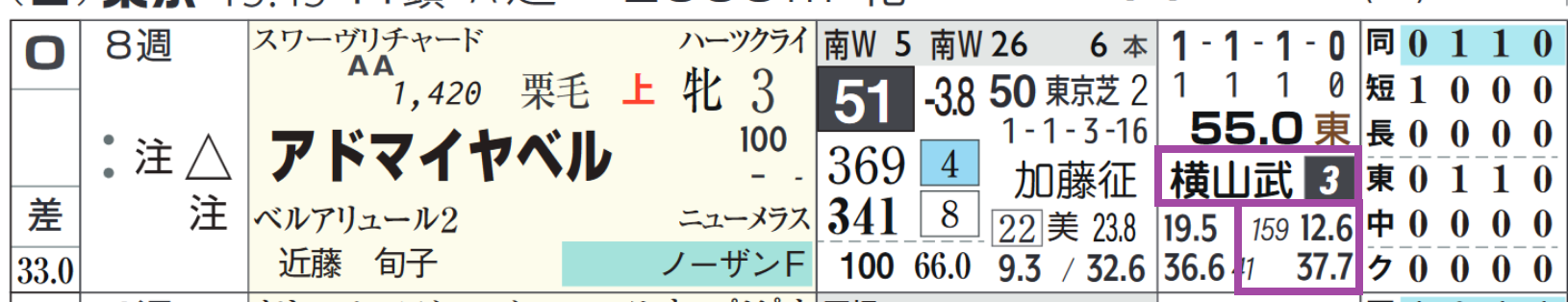 「騎手の該当競馬場の成績」=勝ち数3位、勝率12.6%&複勝率37.7%(159レース)