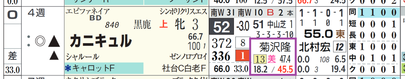菊沢厩舎は東京の芝の複勝率40%超えと優秀。