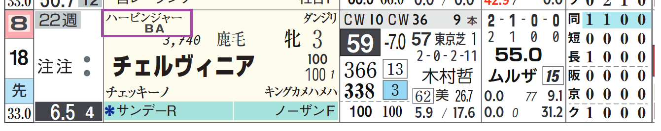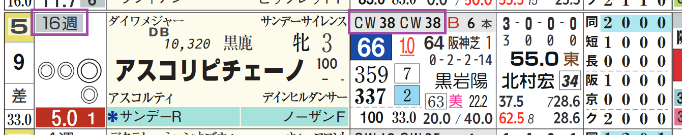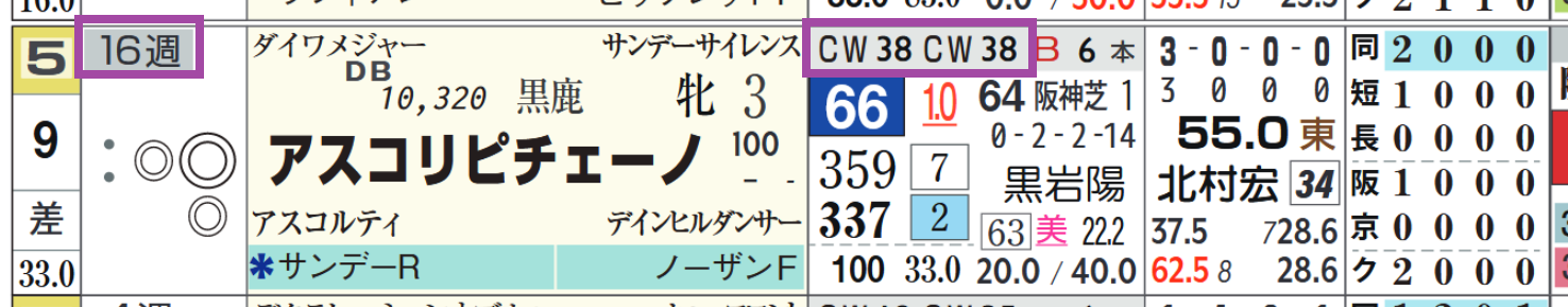 当週&1週前の「追切コース」=《CW》、「追切指数」=《38》