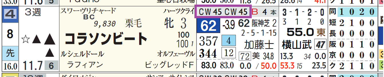 当週&1週前の「追切コース」=《CW》、「追切指数」=《45》