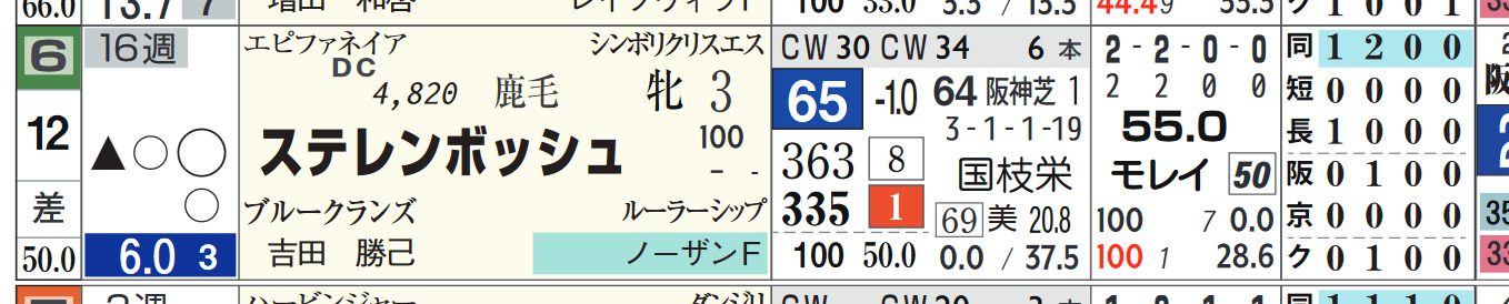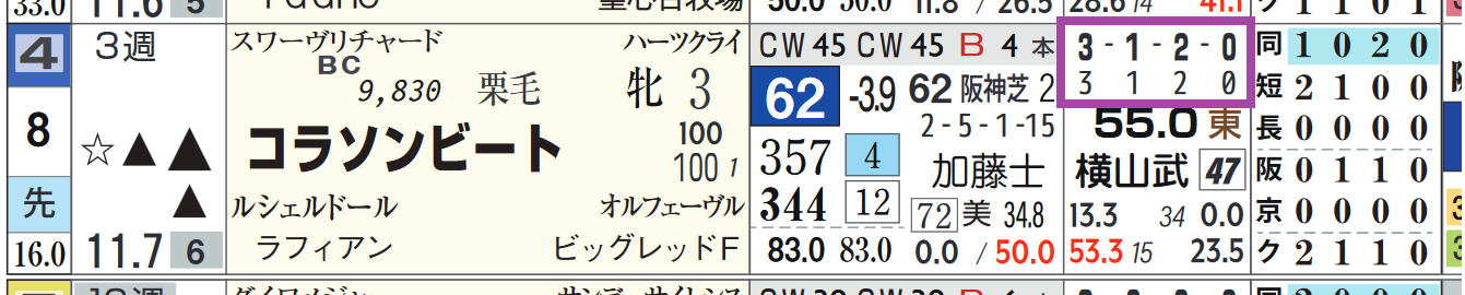 ⑧コラソンビートはデビュー6戦すべて3着以内と堅実。