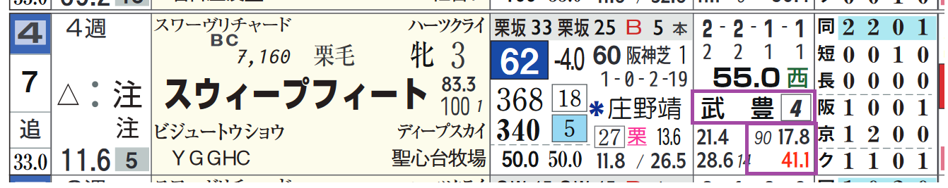 武豊騎手は阪神の芝の勝ち数が4位&複勝率40%超えと優秀。