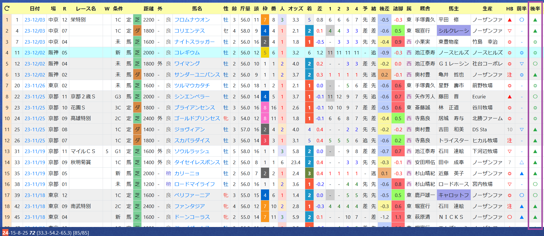 「騎手×厩舎成績」=勝率31.5%&複勝率56.2%(73レース)
