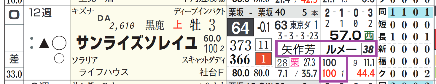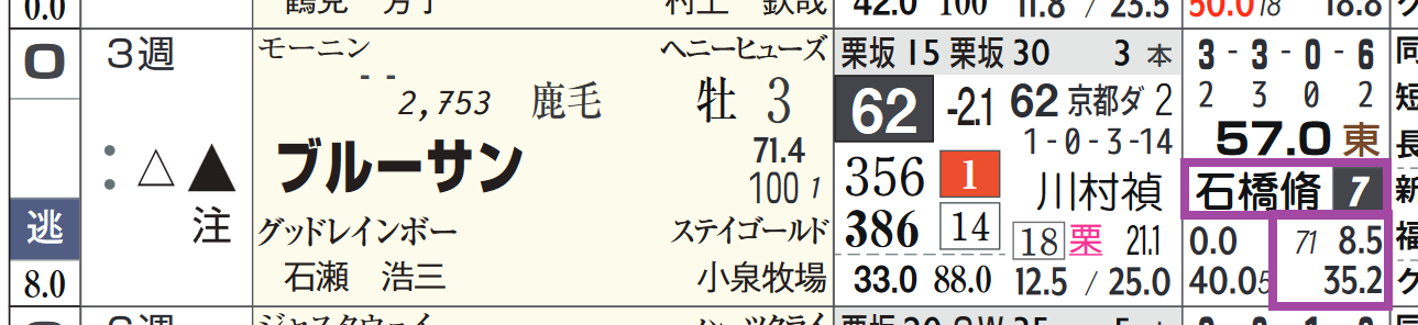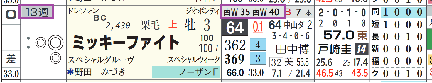 「ローテーション」=中13週、当週&1週前の「追切指数」=《35》《40》