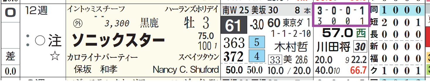 「全成績」「ダート成績」=【3・0・0・1】