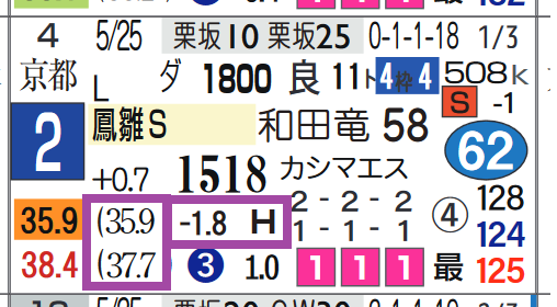 前後半35.9秒-38.4秒(前傾1.8秒のハイペース)