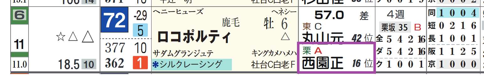 「リーディング順位」=16位、「厩舎評価」=《A》