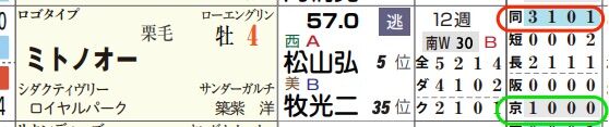 「距離実績」=【3・1・0・1】、「コース実績」=【1・0・0・0】