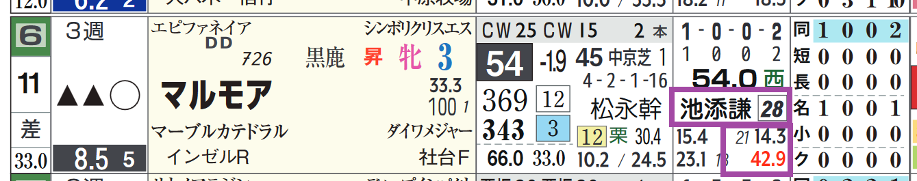 2024年09月29日 【レース予想】中京7R・3歳上1勝クラス 【中京7R・3歳上1勝クラス】⑪マルモアは前走が好メンバー相手に初勝利。「レースレベル」=《A》、「ハイブリッド指数」=《45》池添騎手は中山の芝で複勝率40%超えと優秀。「騎手の該当競馬場の成績」=勝ち数28位、勝率14.5%&複勝率42.9%(21レース)⇒「インスタグラム」「ツイッター」にて他情報も更新中 「レース予想」カテゴリの最新記事