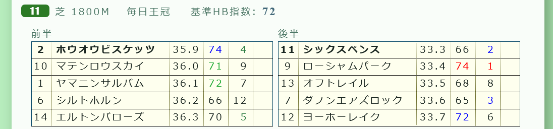 ⑪シックスペンスが好ラップ&上がりが優秀。