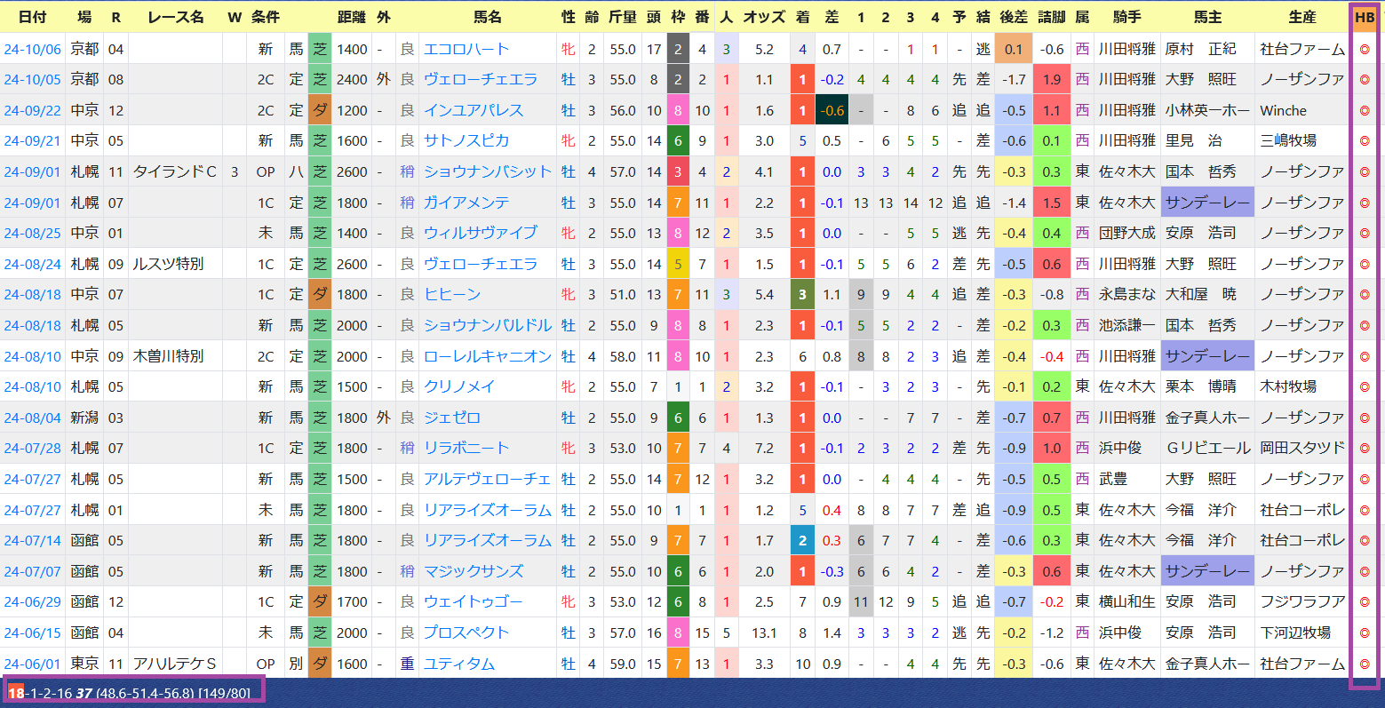 2024年10月07日 【データ分析】須貝尚介厩舎 【須貝尚介厩舎】アルテヴェローチェがサウジアラビアRCを制覇。先週は3勝、リーディング独走と絶好調。年度別成績「ハイブリッド指数」1番手で勝率48%の超ハイアベレージ「ハイブリッド指数」1番手の成績→トップページからログイン→「HBビューワ」→「厩舎成績」※会員登録(無料)で利用可能⇒「インスタグラム」「ツイッター」にて他情報も更新中 「データ分析」カテゴリの最新記事