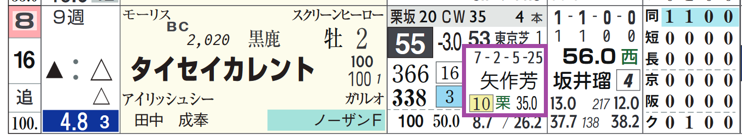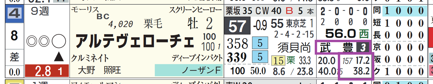 「ローテーション」=中9週、1週前の「追切指数」=《40》