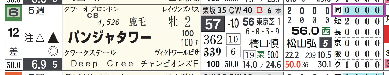 「騎手の該当競馬場の成績」=勝ち数3位、勝率17.2%&複勝率38.2%(157レース)