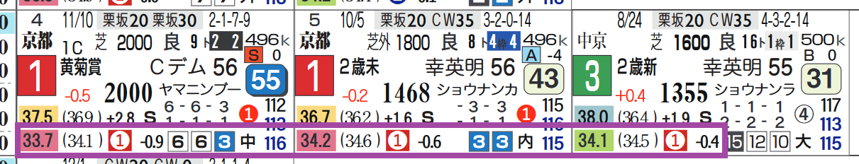 「レースラップのラスト3ハロン」=11.7秒-10.9秒-11.3秒