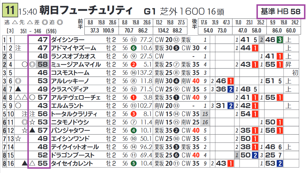 🈟【HBリスト】 …HB順に並べたシートです。軸馬を決めやすく、指数高めの不人気馬の取りこぼしを防ぐのに役立ちます