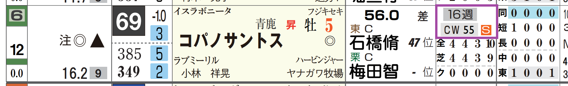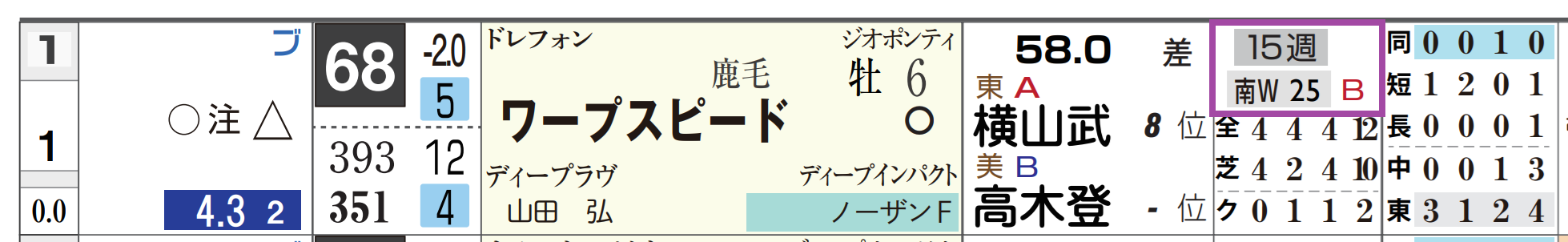 「ローテーション」=中17週、「追切指数」=《45》、「追切評価」=《A》
