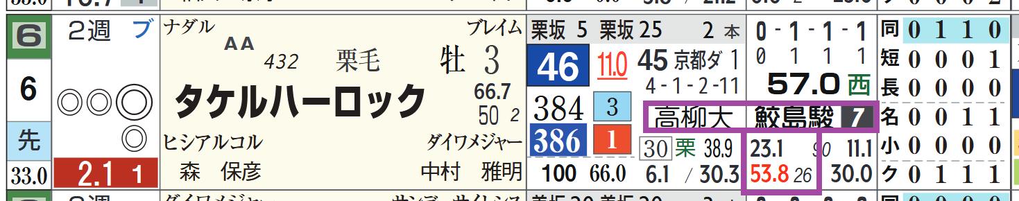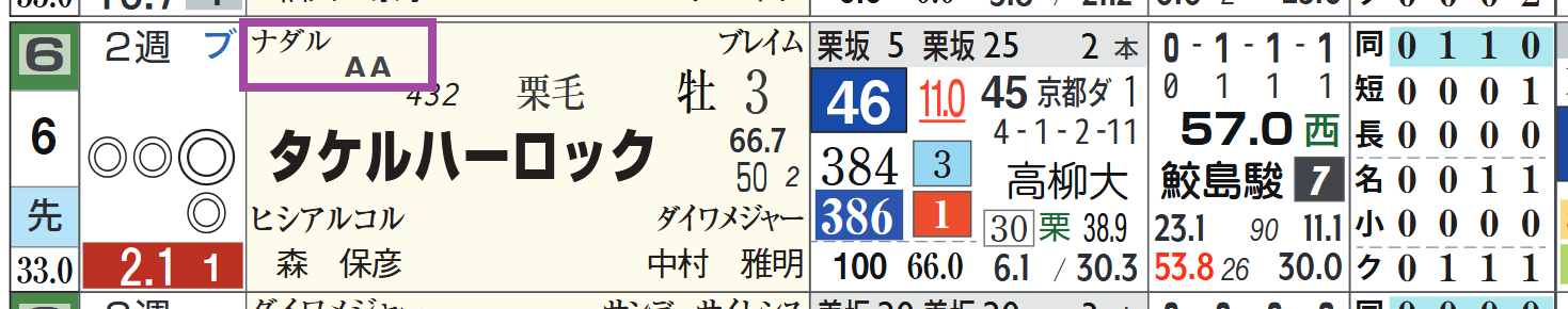 2025年01月18日 【レース予想】中京2R・3歳未勝利 【中京2R・3歳未勝利】⑥タケルハーロックは休み明けの前走で急成長。「ローテーション」=中14週、「ハイブリッド指数」=《45》鮫島駿騎手&高柳大厩舎とのコンビは複勝率50%超えと好相性。「騎手×厩舎成績」=勝率23.1%&複勝率53.8%(26レース)ナダル産駒は中京のダートの中~長距離の成績&回収率が秀逸。「血統評価」=成績A&回収率Aアメリカンファラオ産駒の④ダニエルバローズもチャンスあり。「血統評価」=成績B&回収率A⇒「インスタグラム」「ツイッター」にて他情報も更新中 「レース予想」カテゴリの最新記事