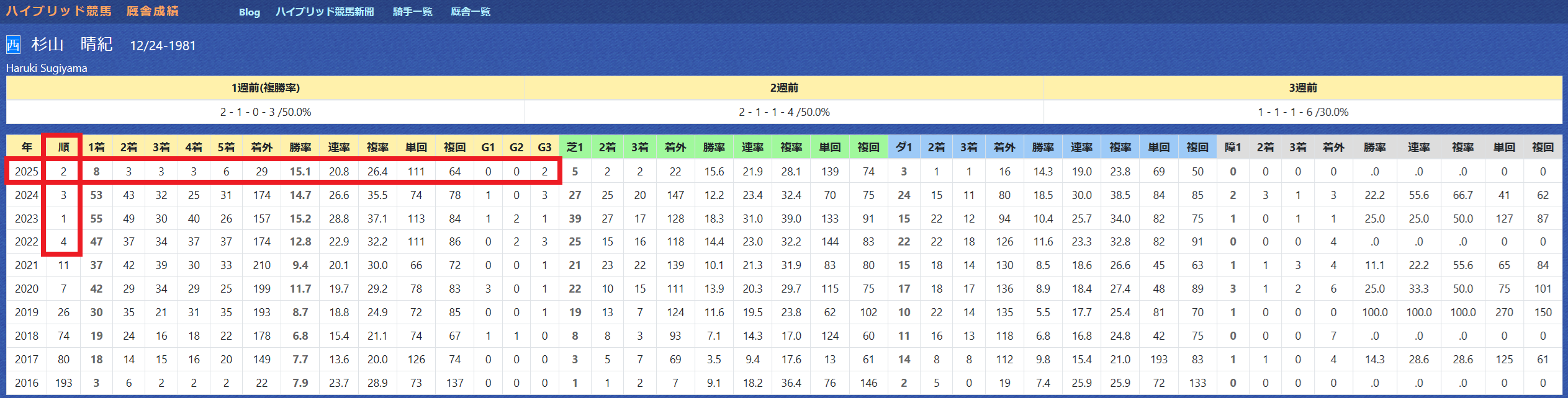 2025年02月20日 【データ分析】杉山晴紀厩舎 【杉山晴紀厩舎】一昨年はリーディング、近3年は4位以内。年度別成績今年も2位と好調。既に重賞2勝。フェブラリーSのエンペラーワケアはチャンス大。厩舎リーディング→トップページからログイン→「HBビューワ」→「厩舎成績」※会員登録(無料)で利用可能⇒「インスタグラム」「ツイッター」にて他情報も更新中 「データ分析」カテゴリの最新記事