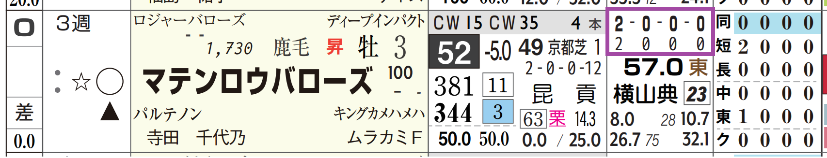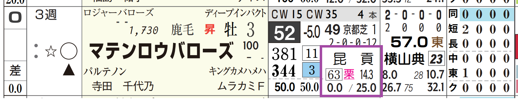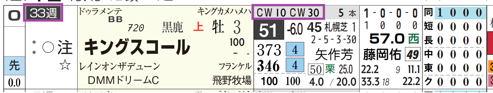 「ローテーション」=中33週、当週の「追切指数」=《10》