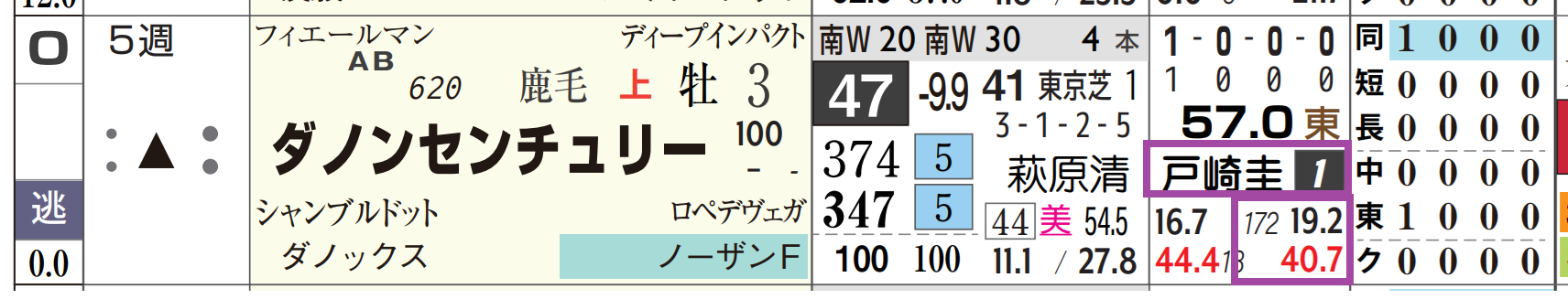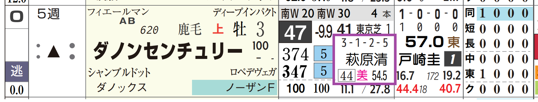 「推定前半3ハロン」1位、「4角5番手内率」=《100%》