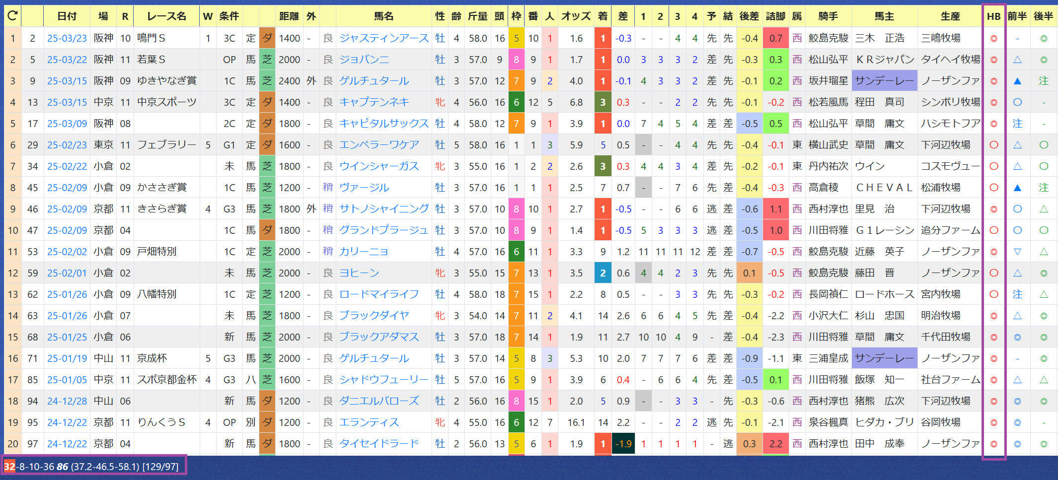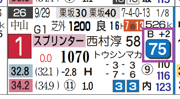 「近6走の最高HB指数」=《76》
