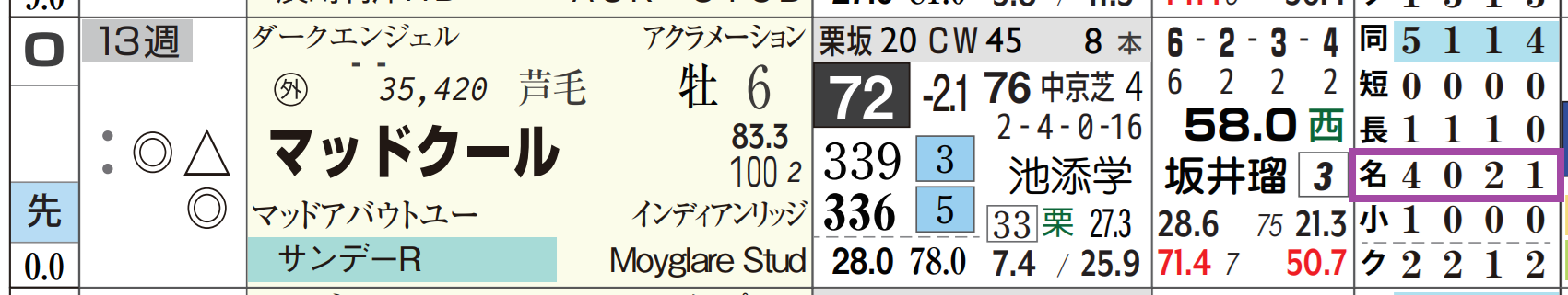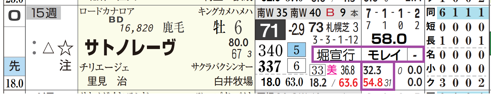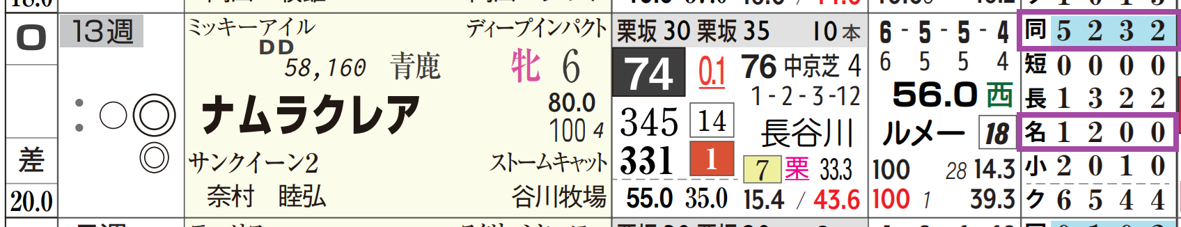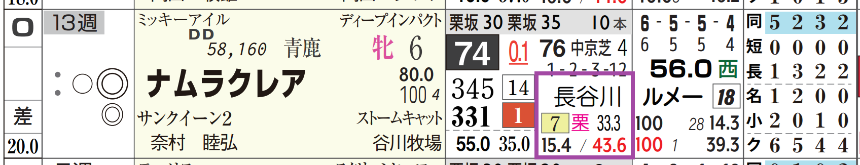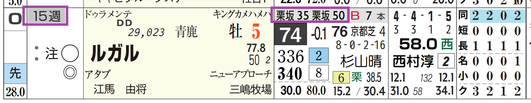 「ローテーション」=中15週、1週前の「追切指数」=《50》