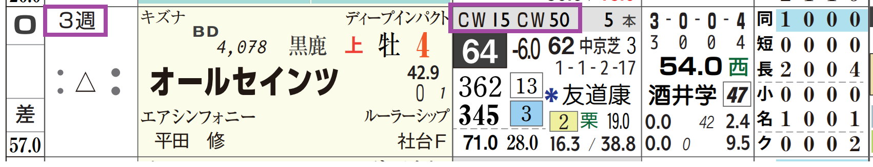 「ローテーション」=中3週、1週前の「追切指数」=《50》