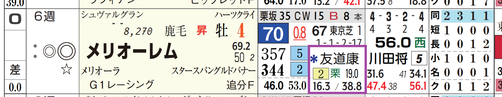 「厩舎の該当競馬場の成績」=勝ち数2位、勝率16.3%&複勝率38.8%