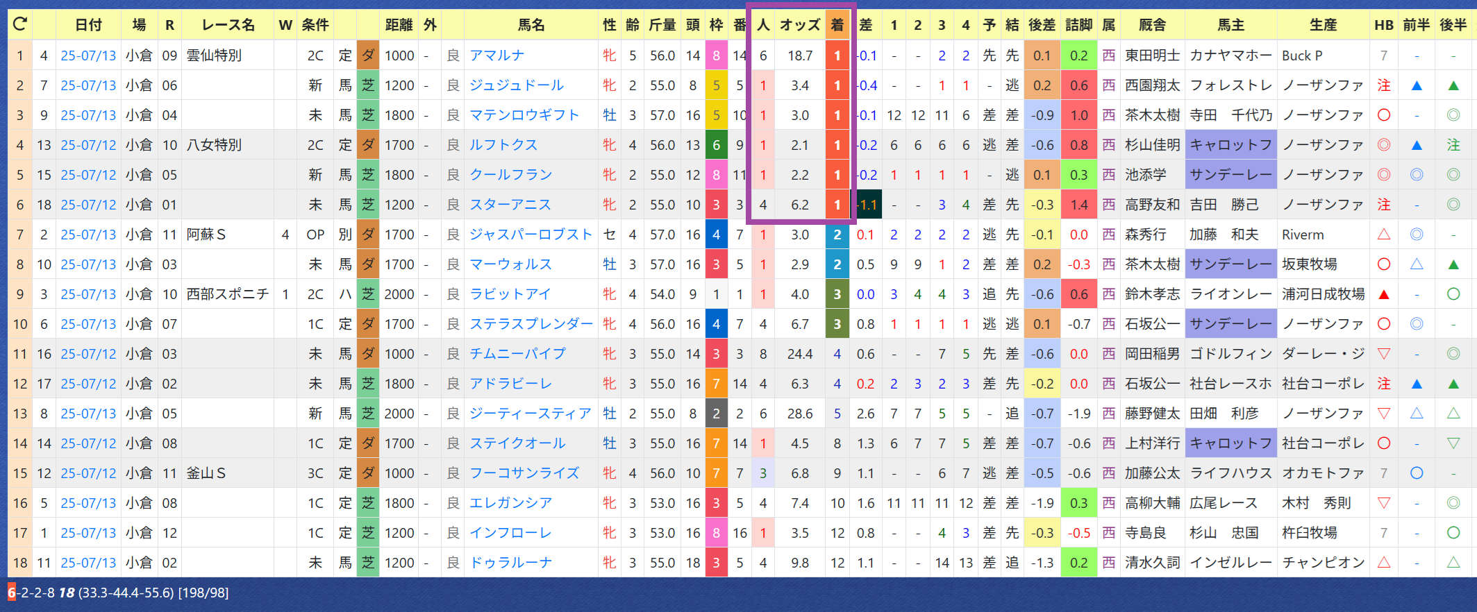 「インスタグラム」「ツイッター」に書いた通り、「推定後半3ハロン」2位以内は勝率28%&複勝率51%のハイアベレージ。