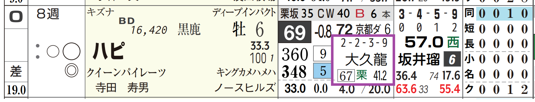 「近4開催の厩舎成績」=【2・2・3・9】、「複勝率」=《41.2%》
