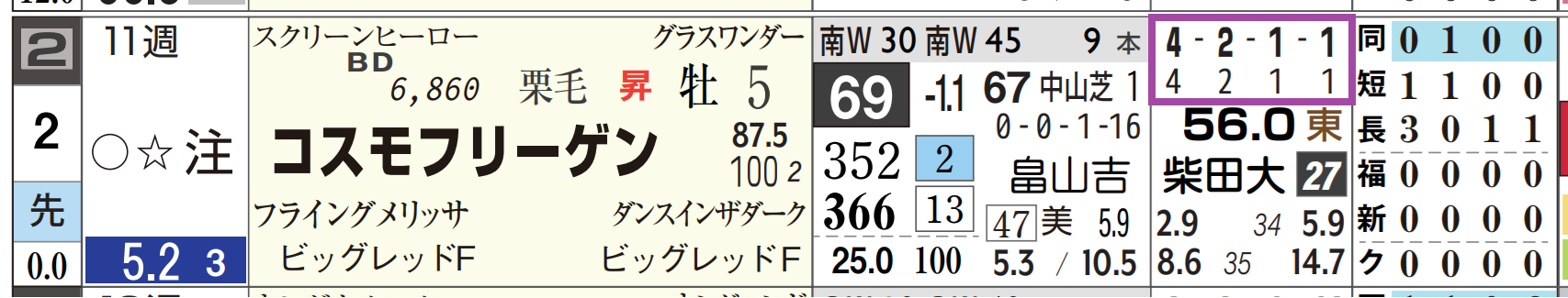 ②コスモフリーゲンは8戦4勝&2着1回。