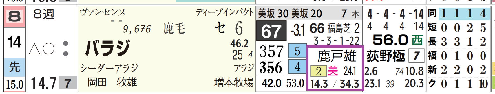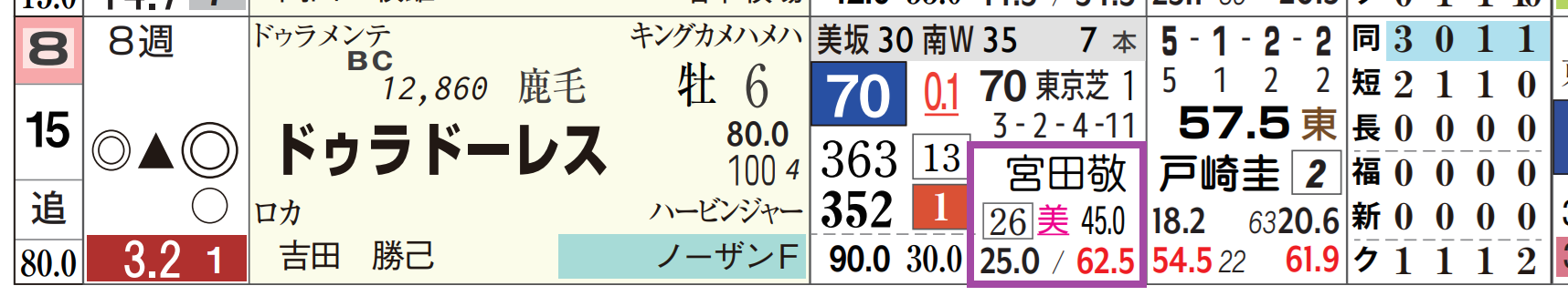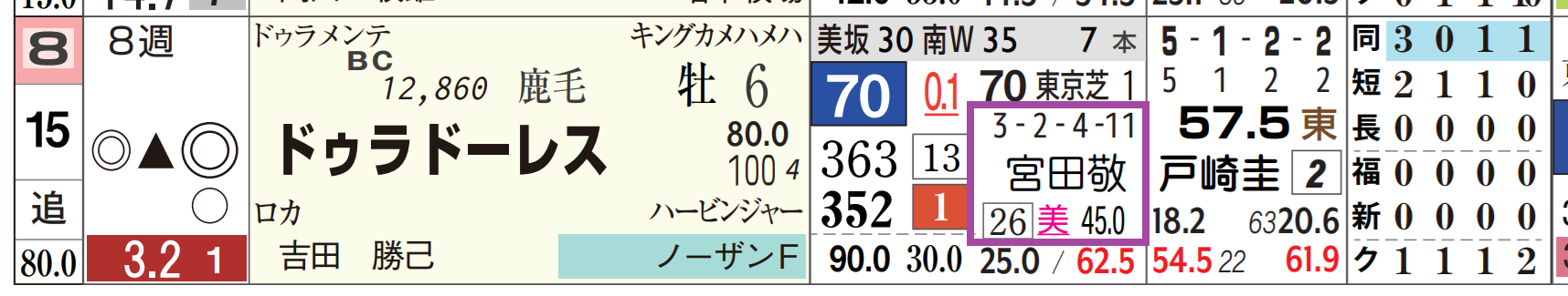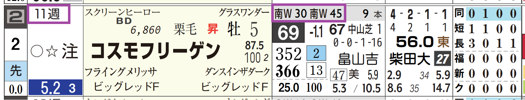 「ローテーション」=中11週、1週前の「追切指数」=《45》