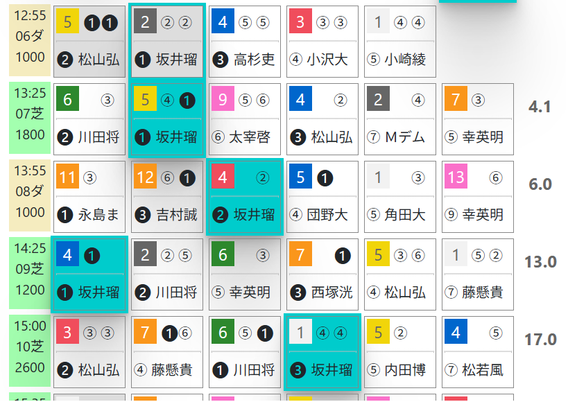 2025年07月06日 【レース予想】小倉7R・3歳上1勝クラス(牝) 【小倉7R・3歳上1勝クラス(牝)】⑤ダノンフェアレディは坂井騎手でチャンスあり。「騎手の該当競馬場の成績」=勝ち数8位、勝率17.6%&複勝率62.7%(51レース)小倉で中盤レースから有力馬が多数。坂井騎手+「ハイブリッド指数」上位*画像はハイブリッド新聞(ライト版)の「HBリストビューワ」【「HBリスト」のサンプル】・全場版 ・競場別版⇒「インスタグラム」「ツイッター」にて他情報も更新中 「レース予想」カテゴリの最新記事