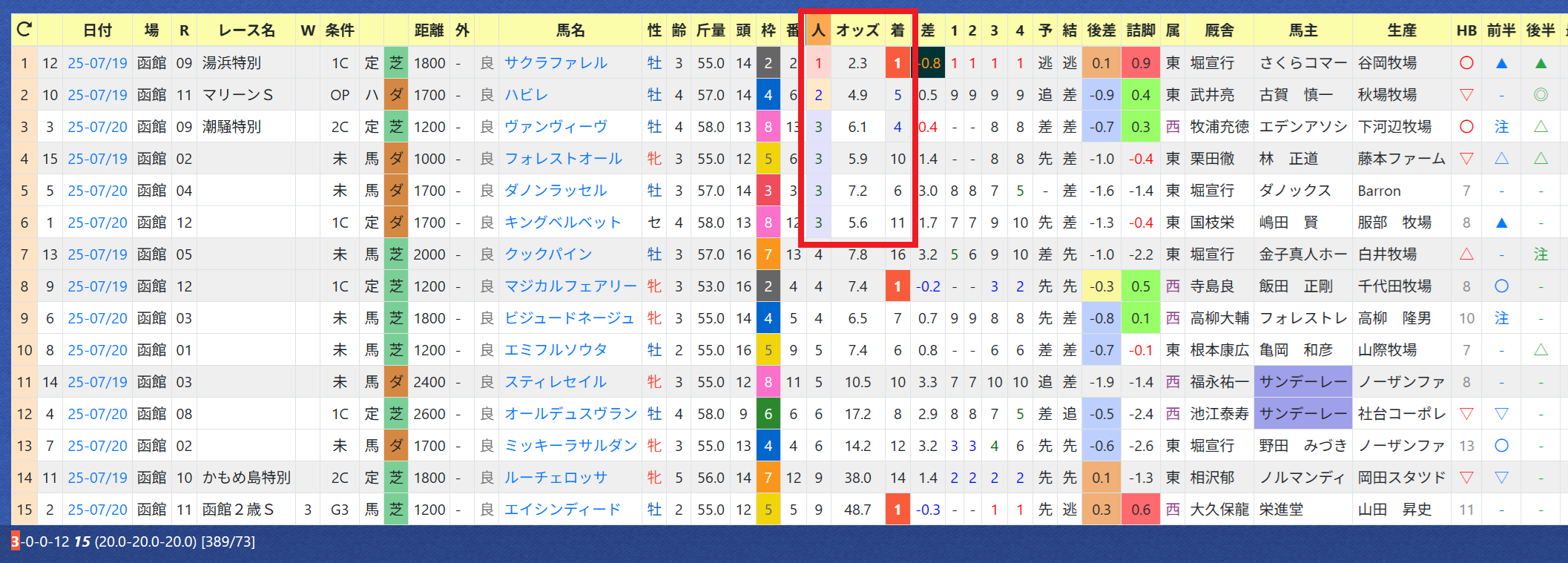 2025年07月21日 【データ分析】キング騎手 【キング騎手】函館2歳Sを人気薄のエイシンディードで逃げ切り。年度別成績来日の初週は3勝。意外と人気馬では馬券圏外が多い。先週の成績→トップページからログイン→「HBビューワ」→「騎手成績」※会員登録(無料)で利用可能⇒「インスタグラム」「ツイッター」にて他情報も更新中 「データ分析」カテゴリの最新記事